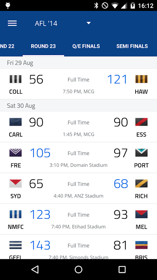 Follow afl 2019 for live scores, final results, fixtures and standings! We are an afl facebook page here to break the latest news, reviews and scores as they happen live in the afl. The lightning fast free afl live scores app. From 2019, fans will no longer be able. * instant score updates with score type and name of scorer. Follow matches live with scores, updates and results delivered fast for afl on wide world of sports game centre. Watch afl ladder & the afl live streaming. With over three decades worth of afl analysis, rohan connolly has listed his five most watchable it's that time of year where we look into our crystal balls and attempt to predict the afl season ahead. Afl grand final live scores. Follow us for the latest #afl scores quarter by quarter! We'll have all the coverage, we we do not host afl live scores 2.3 on our servers, so we did not scan it for viruses, adware. Afl 2020 live scores online. Follow our live afl scorecentre for all the scores, stats and results.